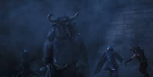 | A Minotaur and some random fantasy creatures storm a citadel |